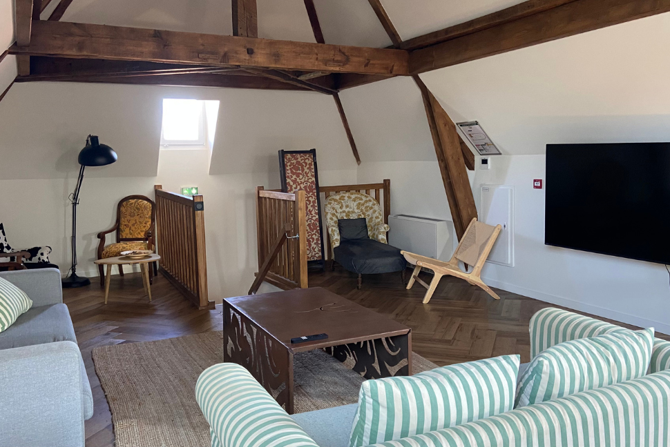 En plus de vos chambres, notre étage de coliving offre des espaces de vie communs où vous pourrez retrouver les autres colivers du Château pour discuter, partager des moments ou des anecdotes et occuper vos soirées. Nos combles ont été entièrement aménagés de manière à transmettre une atmosphère chaleureuse et accueillante pour que vous vous y sentiez comme chez vous. Ce nouveau mode de vie qu’est le coliving, est idéal pour faire de nouvelles rencontres facilement.
