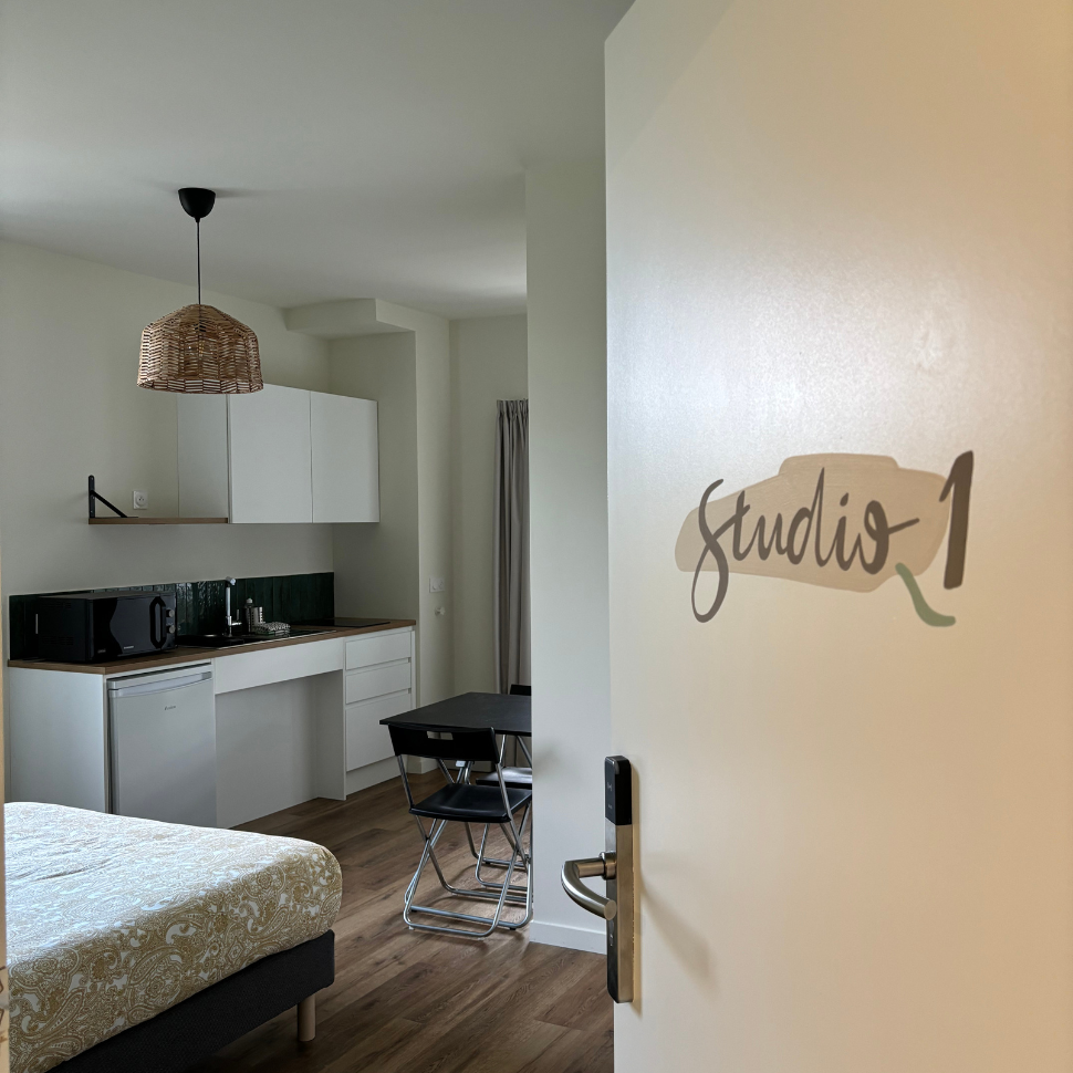 Adapté aux normes handicapées, le studio est le compromis pour faire partie de la communauté du Château peu importe ce qui vous rend unique. Idéal également pour vous accueillir en couple grâce à la surface plus grande qu’il offre.